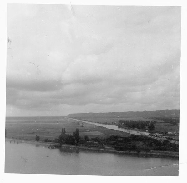 Photo prise, semble-t-il, depuis le pont de Tancarville, avec la Seine au 1er plan et le canal de Tancarville rive droite.