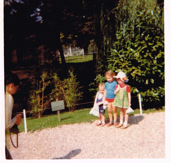 Martine Hugues prenant en photo sa fille Hélène, et ses cousins Natacha et David Lamotte.