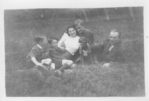 Il s’agit de Jules Delmer , le plus jeune frère de [Marie-Thérèse Thorez épouse Pecquet] et arrière grand-mère Hélène Delmer épouse Thorez, avec 3 de ses enfants et son gendre. De gauche à droite : Pierre Delmer (1932/1995), Michel Delmer (né en 1937), Thérèse Delmer (1921/2009), son mari Pierre Hunou (mort en 2011) et Jules Delmer (1896/1973).