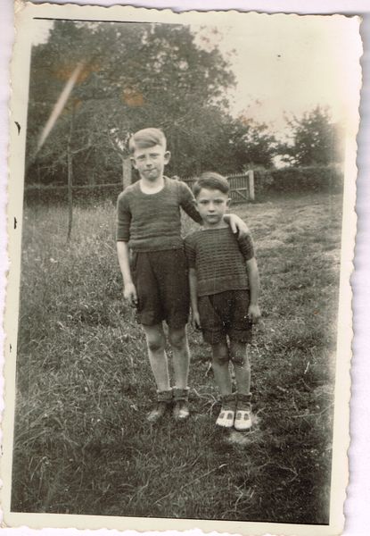 de gauche à droite Pierre et Michel Delmer, photo prise à St Julien de Mailloc (Calvados), sans doute pendant la guerre ou juste après la libération, vue la taille de Michel